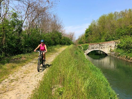 Scendiamo poi verso Caravino e proseguiamo fino a incrociare il naviglio di Ivrea, di cui seguiamo l’alzaia fino a Borgo Masino. Lasciamo il canale per raggiungere il lago di Maglione, privato ma molto suggestivo, e proseguiamo fino al borgo di Maglione, caratterizzato dal Macam, museo d’arte contemporanea a cielo aperto, con più di 150 opere di artisti famosi in tutto il centro storico. Ritorniamo seguendo il naviglio di Vestigné e proseguiamo su strade prevalentemente pianeggianti per ritornare a Cavaglià.